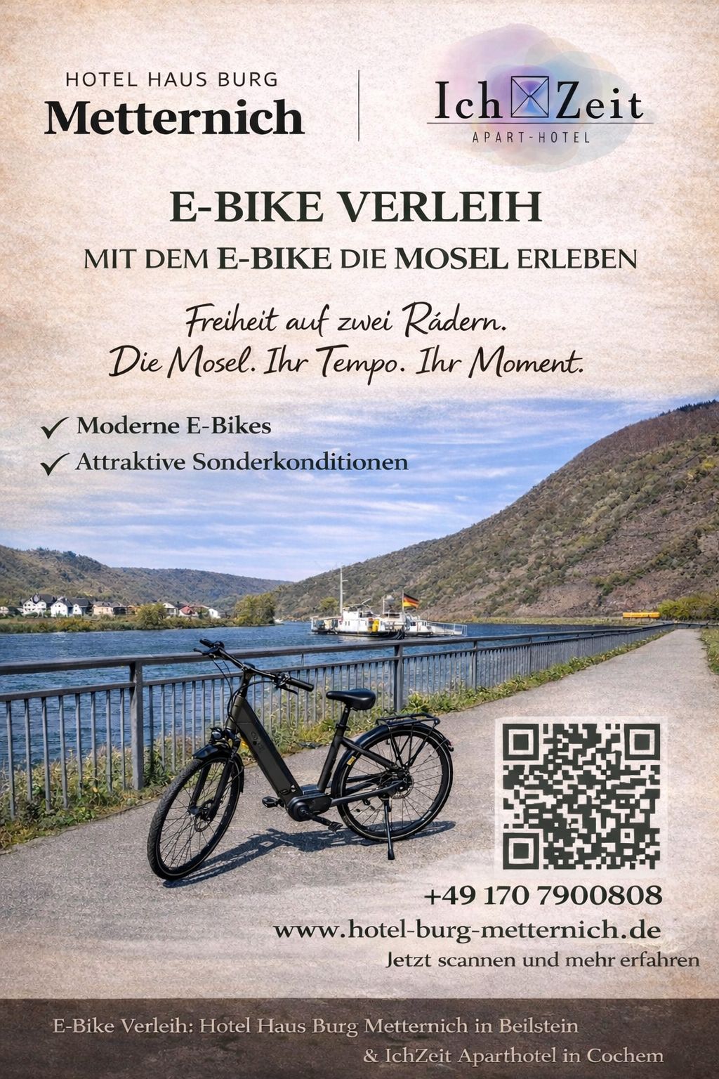 Gerne empfehlen wir Ihnen auch unser Apart Hotel IchZeit in Cochem. Hier erwartet Sie der 2019 fertig gestellte Neubau, welcher Design und Erholung mit dem Lifestyle unserer Zeit vereint. Mit viel Liebe zum Detail wurde jedes Apartment individuell geplant und gestaltet, um höchsten Ansprüchen an Erholung und Wohlbefinden zu genügen. Über drei Etagen erstrecken sich 9 Apartments und bieten vom eigenen privaten Balkon, oder Terrasse, einen wundervollen Blick auf die Altstadt, die Mosel und die Reichsburg.